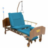 Медицинская кровать Интегра для домашнего ухода, снабжённая механическими регулировками положения четырёхсекционного ложа, функцией переворота* и оригинально реализованной функцией кардио-кресло, представляющей из себя не только статичное полулежачее положение для бодрствования и терапии кардио-заболеваний, но и независимо выдвигающуюся из торца кровати, оборудованную санитарным устройством каталку для перемещения больного с помощью осуществляющего уход человека.